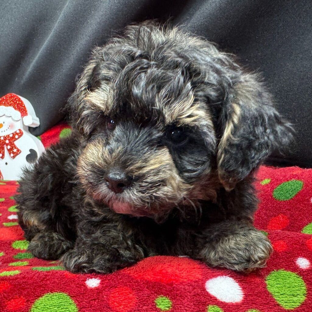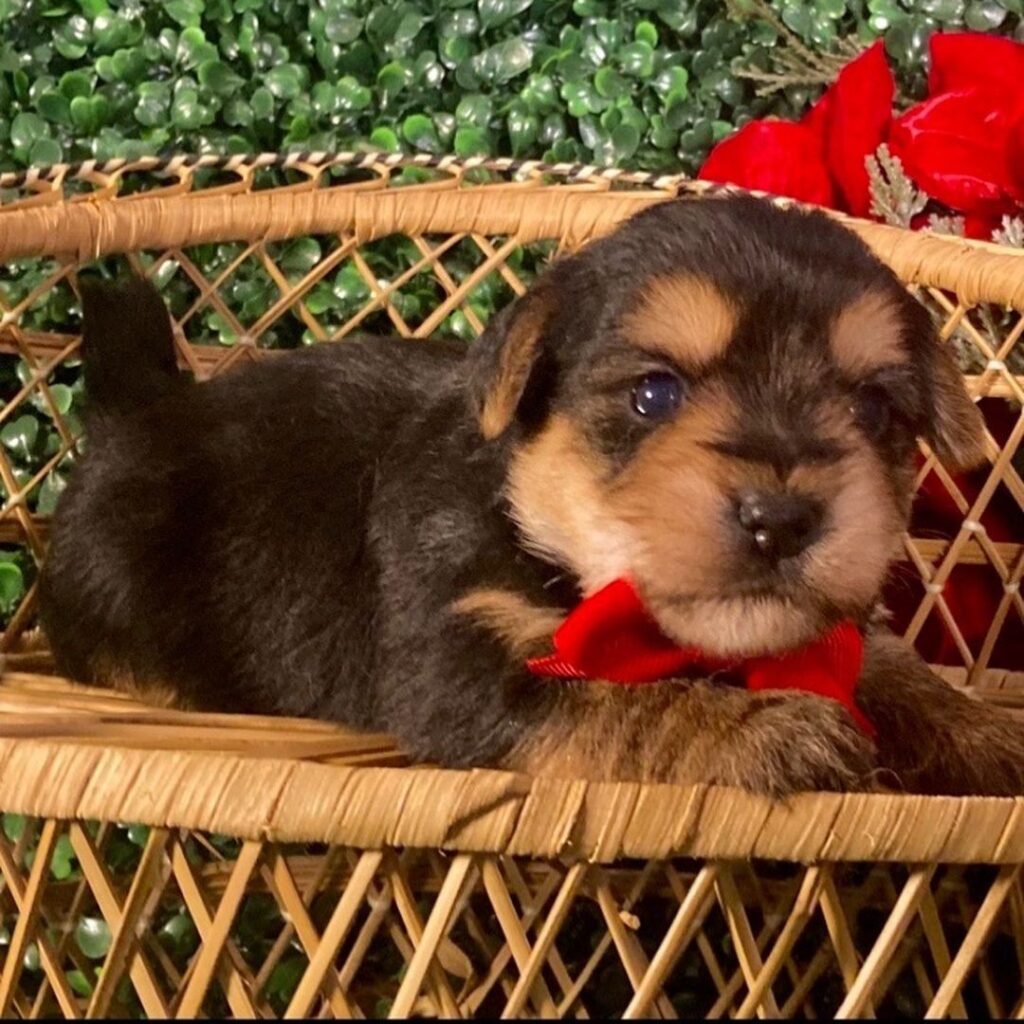 Hi, I’m Bobby! I’m a 5-week-old male Yorkiepoo. My dad is a Poodle and my mom is a Yorkshire Terrier. I have a beautiful black & tan coat, and I was born on November 18, which makes me a Scorpio sign. I’ll be ready to go home to my forever family after January 13, once I’m grown enough to leave my litter. When I reach my adult size, I should weigh between 5–12 lbs. I can’t wait to make your home my forever playground.